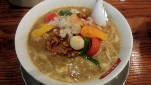 滋魂(新潟市東区) コメントを残す空前絶後のチキンオンザ•カレーらーめん 950円(半ライス付)麺は中太のもっちり麺でスープは優しい口当たりでしっかりとした辛味があります(´▽`) 唐揚げはだいぶ肉厚で、チキンの旨味がカレーと相成って美味しいです(●^o^●) 締めに半ライスをスープの中に入れると美味しいカレーライスの出来上がりですヾ(o´∀`o)ノ 一度で二度美味しいですよ(´V`)♪店名:滋魂 住所:新潟市東区松崎1-1-28 営業時間:11時~15時 17時~21時 定休日:水曜定休日