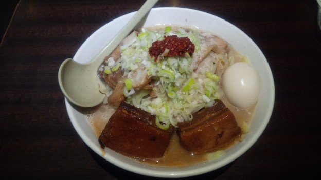 東横 愛宕店(新潟市中央区) コメントを残す豚じろう 1000円 黒にんにく餃子 300円麺は中太ストレートでもちもちとした食感がたまりません(○´∀`○) スープはしっかりと旨味のある濃厚スープで麺と絡むとこの上ない位美味いです(^^)トッピングの豚の角煮は大きくて食べ応えがあります(´▽`) チャーシューも香ばしく美味しいですヾ(o´∀`o)ノ黒にんにく餃子はにんにくを使っているのににんにく臭くなく、しっかりと味がついていてジューシーでペロリと食べれてしまいます(*´ー`*)店名:東横 愛宕店 住所:新潟市中央区愛宕2-2-3 営業時間:11時~23時40分LO 日•祝22時LO
