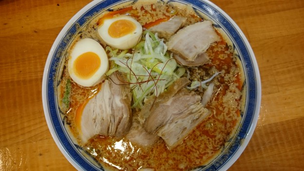 柔らかめの太麺と味噌ベースの背脂入りスープです( ・∇・)