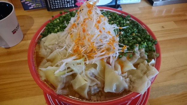 白髪ネギと輪切りのネギでさっぱりと食べれるのは変わらず、肉がジューシーなワンタンが6個プラス無料追加分14個で合計20個にしました(*´∀`)
