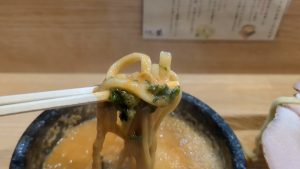 麺は太麺の全粒粉、ツルツルで歯ごたえの良い美味しい麺です。