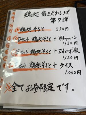 鶏処気まぐれシリーズ第7弾 Dセット(鶏処そると+半チャーハン)1,180円